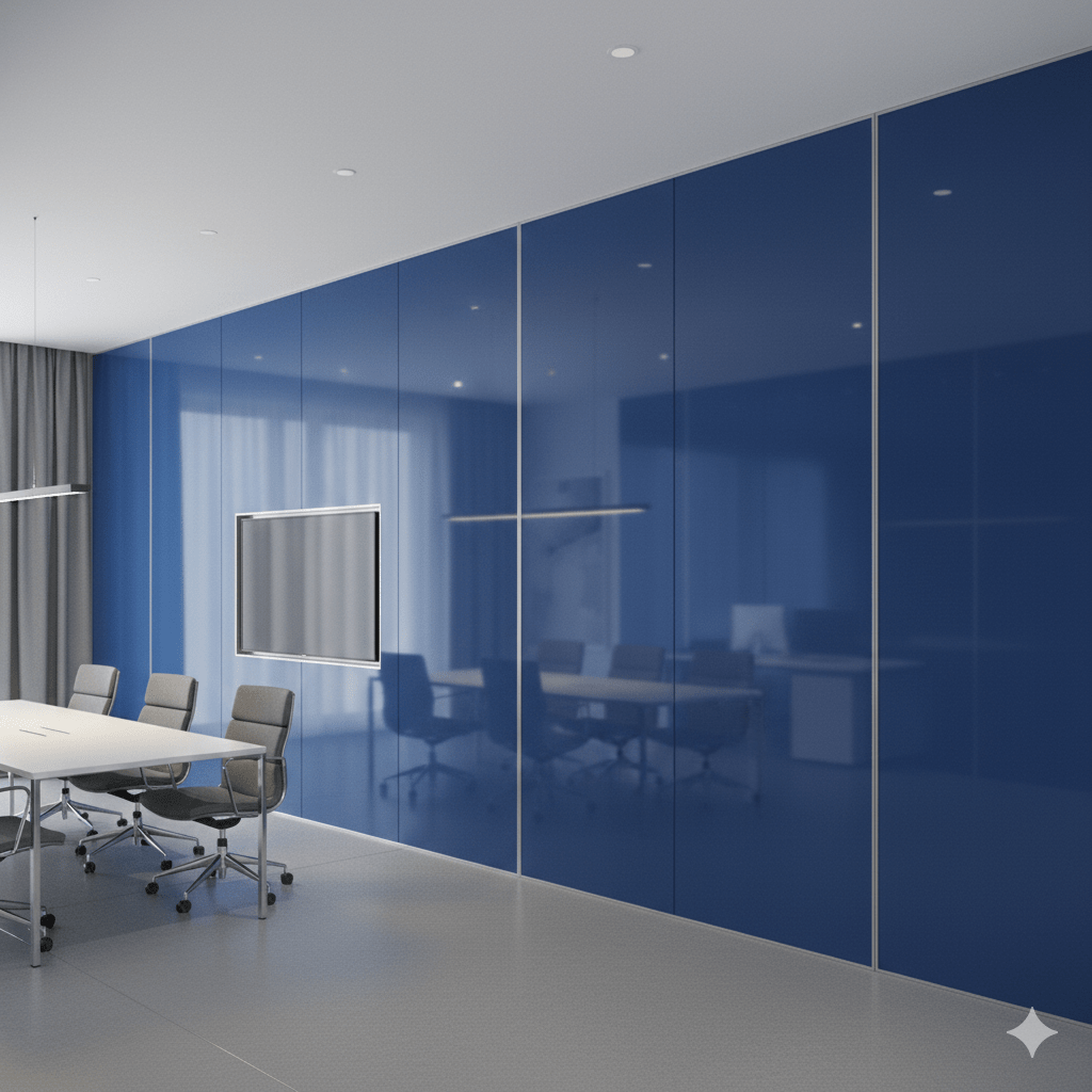 Lacquered glass is a popular choice for office partitions and conference room walls, bringing a clean and professional aesthetic. Its glossy finish reflects light, making workspaces appear more open and productive. The surface provides privacy while adding color and elegance to corporate interiors. It is highly durable and resistant to scratches, making it suitable for high-traffic office environments. The material can be customized with branding, colors, and layouts to match corporate identity. It offers excellent moisture and stain resistance, ensuring long-term performance. Lacquered glass partitions are easy to clean and maintain, making them ideal for modern office spaces. They create a smooth, uniform look that enhances architectural design. Designers use it to create striking feature walls in reception areas and meeting rooms. It resists fading, ensuring lasting color vibrancy. The glass can also be toughened for safety compliance. This application enhances workspace aesthetics while delivering functional benefits. It is perfect for premium, modern business environments.